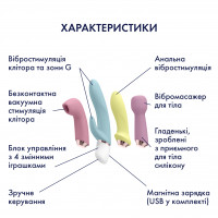 12 виброрежимів і 11 рівнів інтенсивності вакуума, 4 різнопланових іграшки — такий набір ніколи не набридне.
